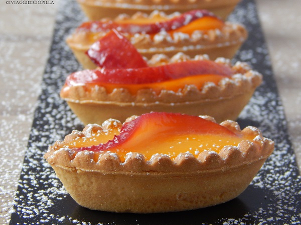 Barchette alla crema di limone e pesca caramellata |