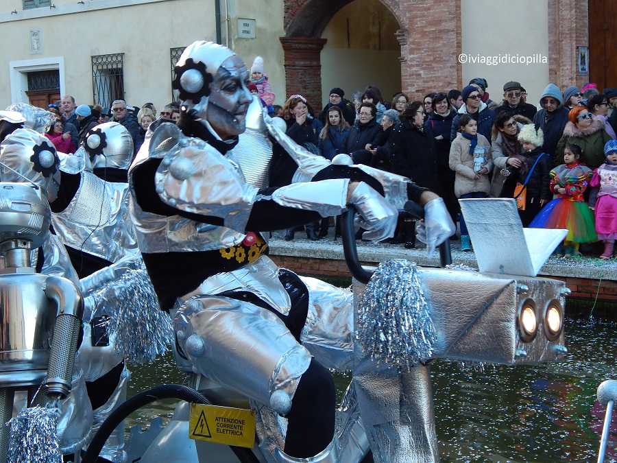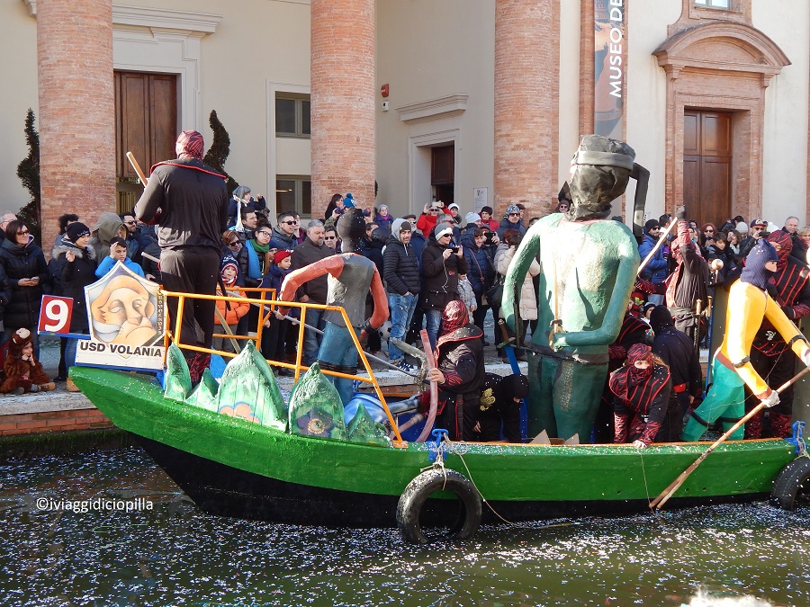 Gruppi mascherati, barche allegoriche che navigano per i canali di Comacchio, si mischiano alla allegria della musica e agli spettacoli di danza a cura delle scuole della cittadina denominata la piccola Venezia.