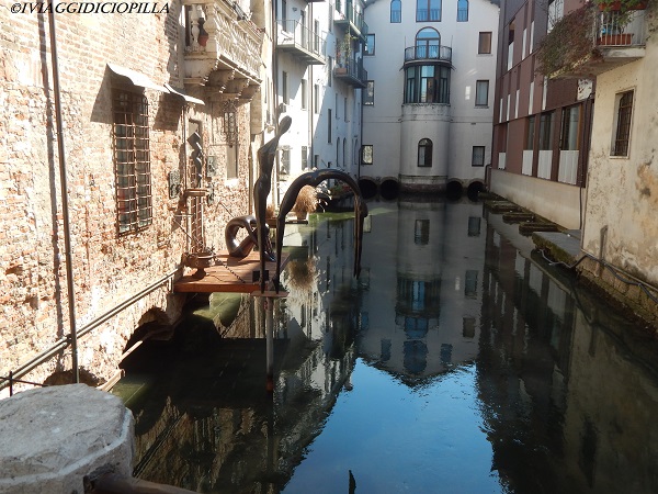 Prima di fermarci per una sosta in una delle trattorie del centro abbiamo l’ultima tappa da visitare assolutamente: Canale Buranelli che con le sue piccole insenature e i balconi d’arte è un vero e proprio angolo di paradiso nel centro della città di Treviso. Il riflesso delle case e dei salici piangenti – adesso posso dirlo sono il simbolo di questa città veneta – che si riflettano sull’acqua insieme al silenzio conferiscono a questo angolo di città un fascino ancora più surreale. Piccole sculture che sembrano buttate li quasi per caso, donano a questo Canale Buranelli una atmosfera di altri tempi! Peccato che l’orda barbarica di un gruppo di turisti stranieri con il loro vociare abbia spaventato le piccole anatre che con i loro cuccioli “passeggiavano” allegramente nel canale.