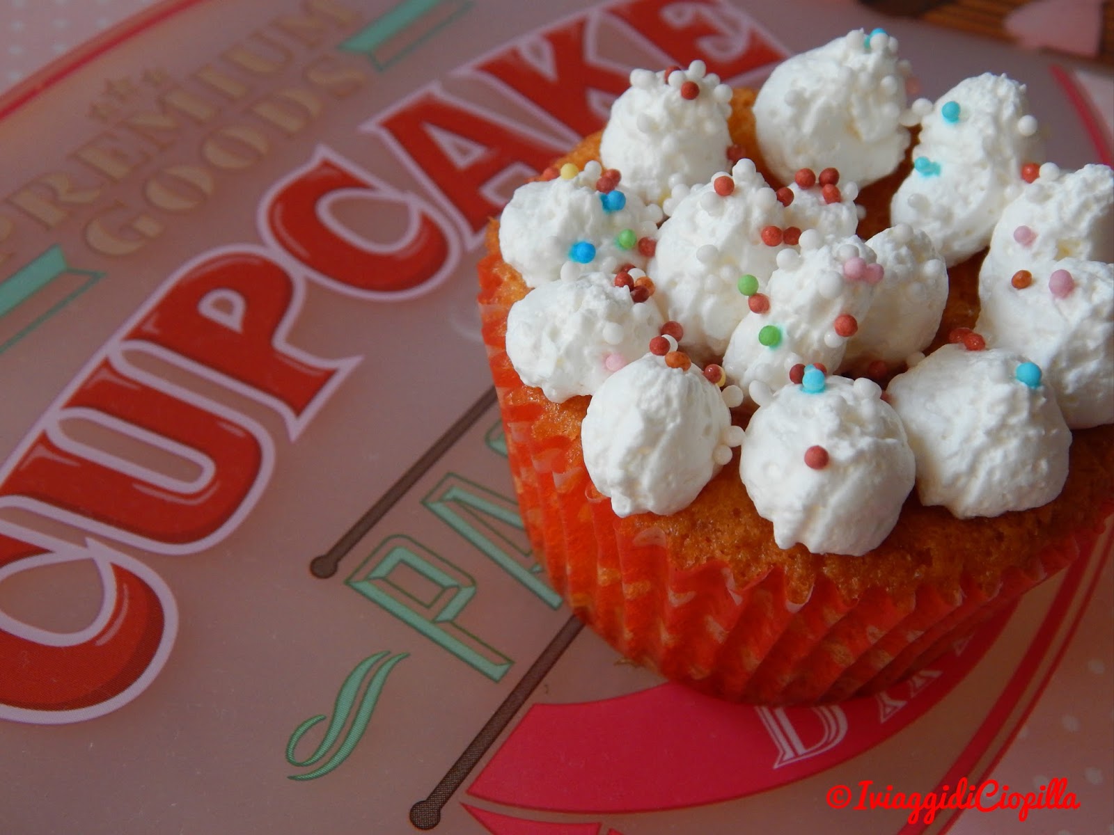 Il ponte del 25 aprile è purtroppo passato con tantissimo vento, freddo e acqua che non ha permesso di poter uscire di casa per poter fare il pic nic che si siamo ripromessi ma non ci siamo scoraggiati e con la piccola Ciopi, ci siamo divertiti ugualmente a fare i cupcake con panna montata e una cascata di colorate caramelline.