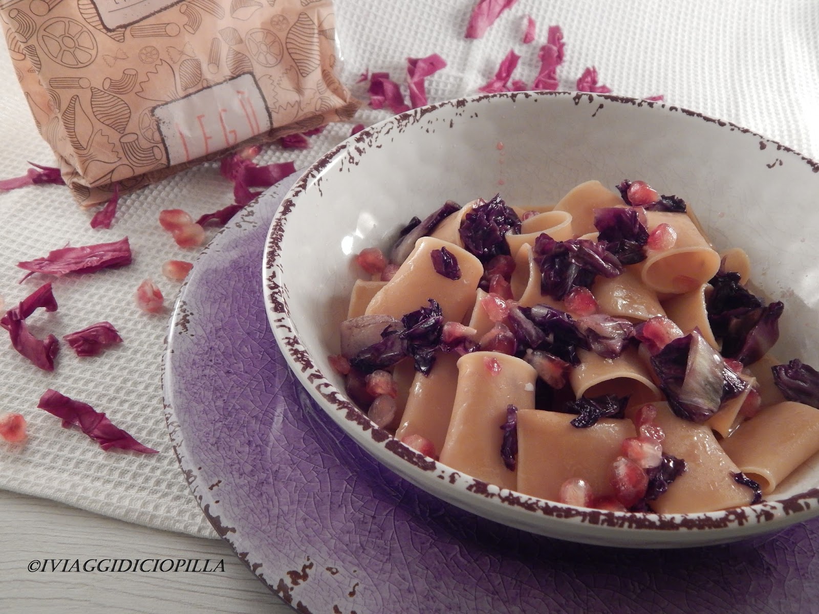 Paccheri con radicchio rosso, alici, capperi con spolverata di melograno