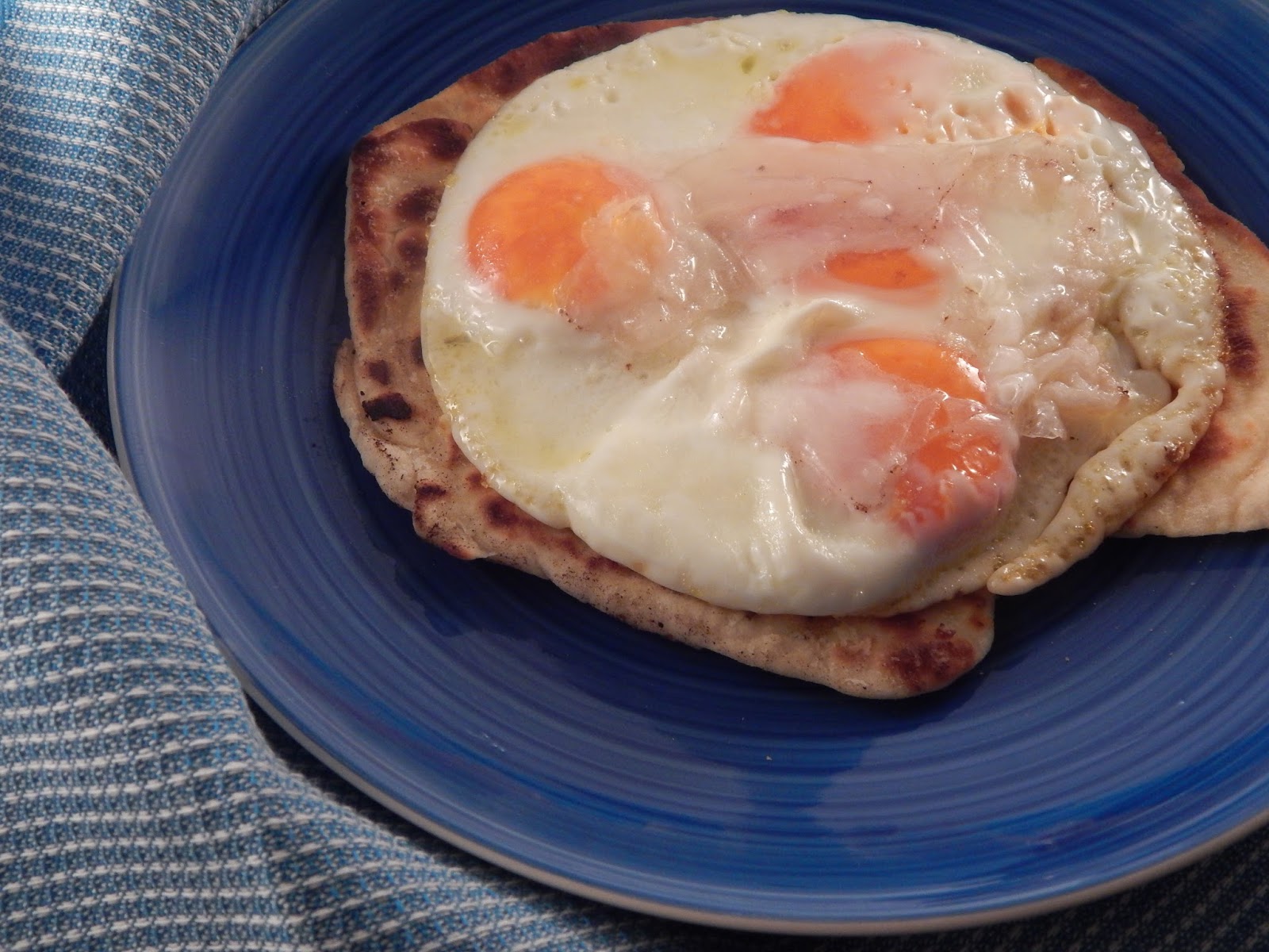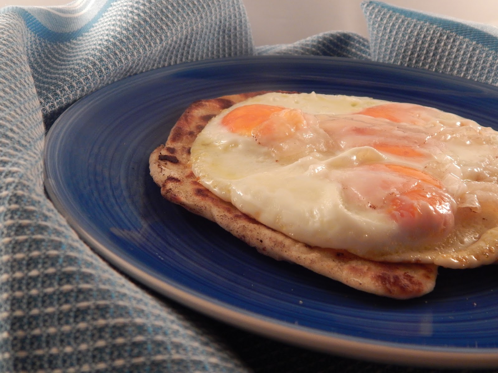 Pane naan con uovo all’occhio di bue e lardo alle erbette