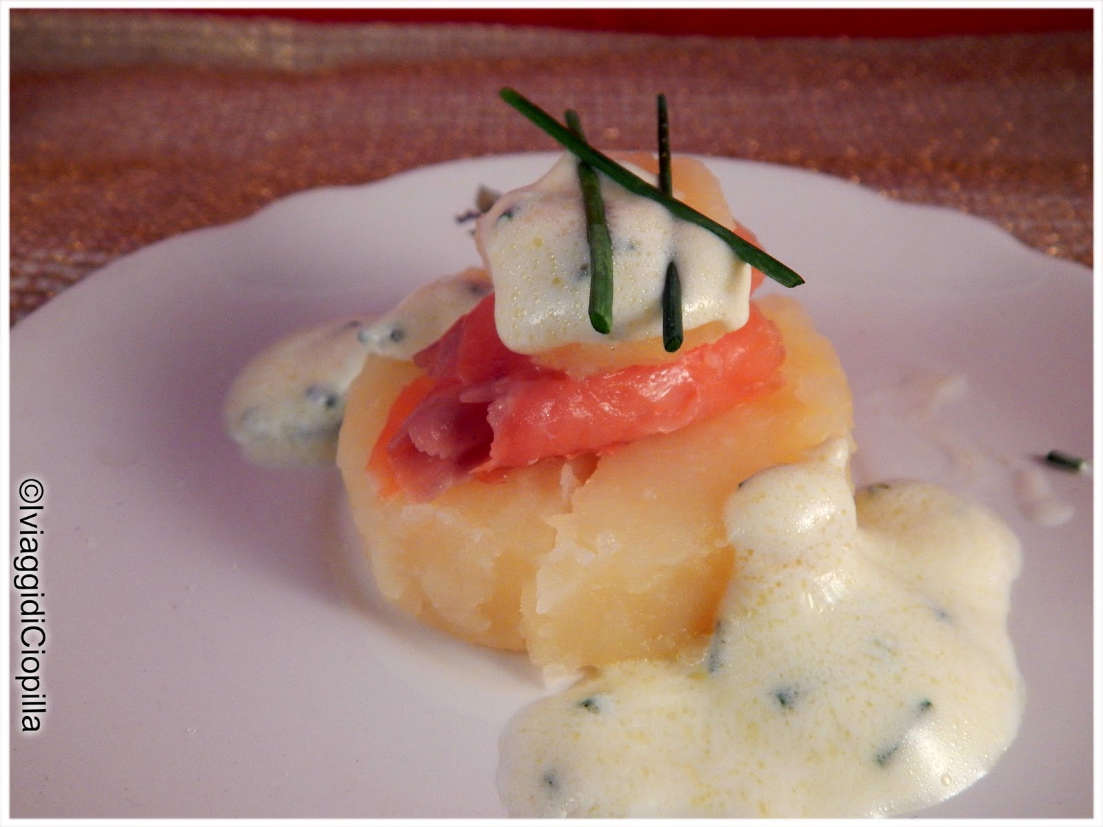 Patate e salmone affumicato con panna acida ed erba cipollina