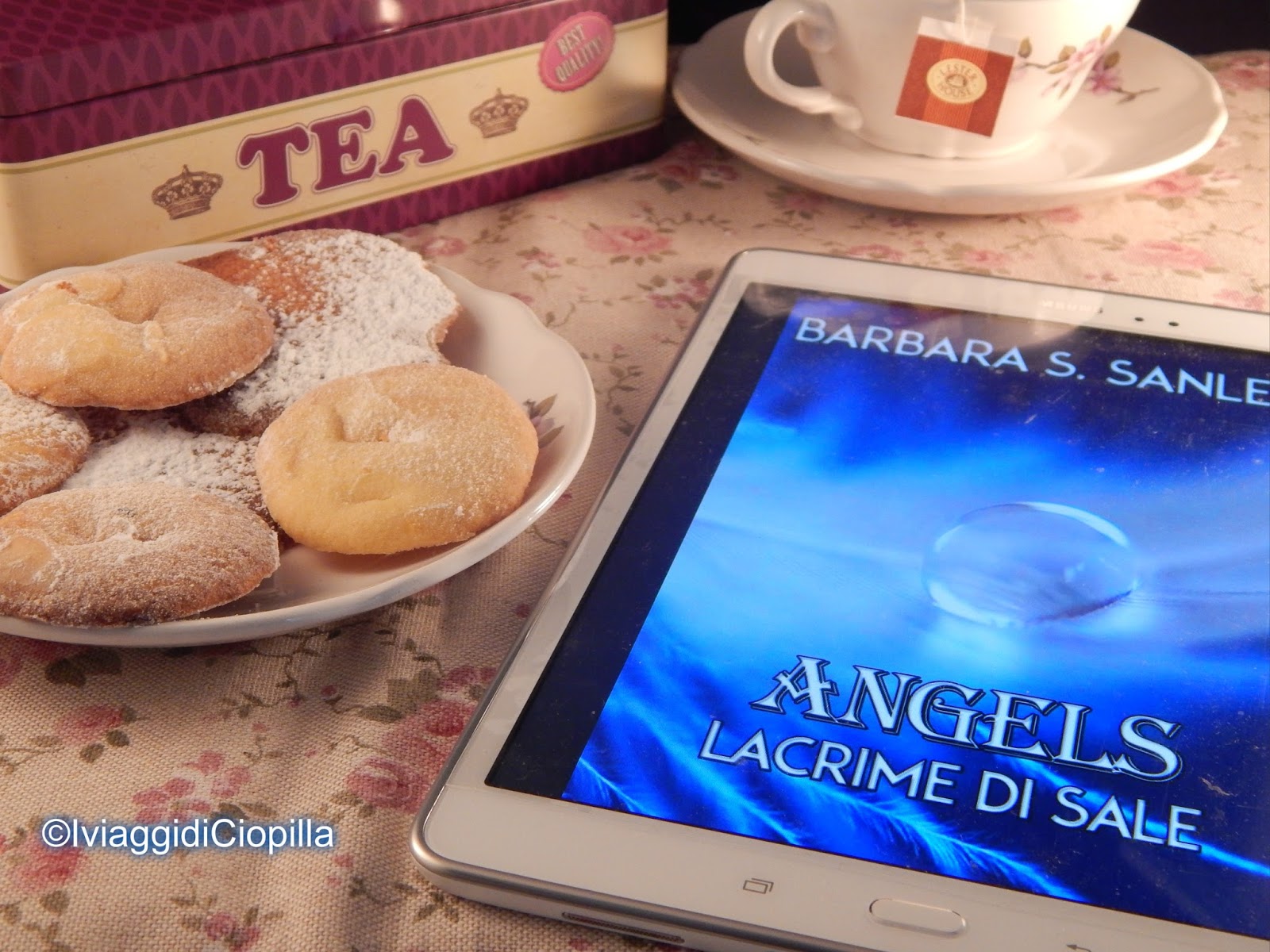Lacrime di sale è il primo capitolo della saga fantasy intitolata Angels che conta tre volumi , di cui il primo acquistabile come E book su Amazon. Era da tempo che non mi immergevo in una lettura cosi coinvolgente – e non lo dico perchè con Barbara è nata una bellissima amicizia – ma perchè la semplicità di narrazione di questo libro mi ha letteralmente conquistata. Ogni singola descrizione, ogni singolo personaggio è raccontato nei minimi particolari ma senza utilizzare inutili giri di parole che possono risultare a lungo andare un lavoro estremo di comprensione del testo, portando cosi ad abbandonarne la lettura. Semplicità, scioltezza, leggerezza e naturalità della parola dove la sinergia tra il lettore e i protagonisti è tale che si arriva a patteggiare per uno piuttosto che per un altro. Man mano che la lettura procede si arriverà ad avere simpatia ed antipatia per uno, due e anche tre personaggi che affollano questo romanzo fantasy. Annoiare il lettore non è una delle caratteristiche di Barbara ! Lo dico e lo sottoscrivo. E per la ricetta dei biscotti, ci sarà tutta l’estate per trascriverla.