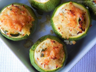 Zucchine al forno ripiene di riso al parmigiano reggiano
