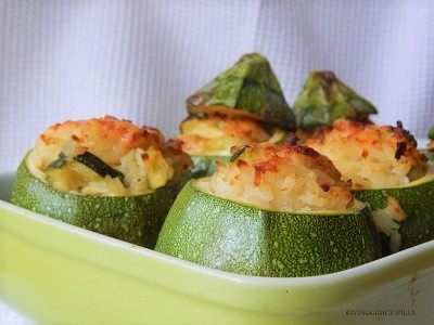Zucchine al forno ripiene di riso al parmigiano reggiano: